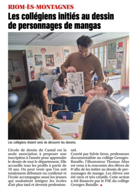 Article de la Montagne du 03/2026 : Intervention de l'Illustrateur Thomas Alias auprès des 6èmes du Collège Georges Bataille