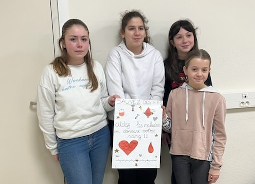Les élèves de 6° ont participé à un concours d'affiche sur le thème du don du sang et Mme Extrèmes a récemment récompensé l'équipe gagnante. un grand bravo à l'ensemble des participants.